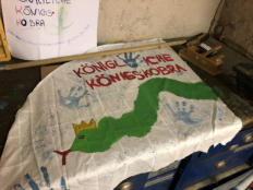 und lachten. Am Ende der Truppstunde sah unser Raum sehr unordentlich aus. Wir teilten uns in Gruppen auf.