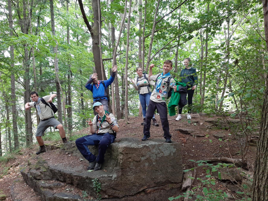 mitnehmen würden. Das war ein bisschen schwierig wir waren ja ungefähr 20 Pfadis. Die Leiter haben dann noch